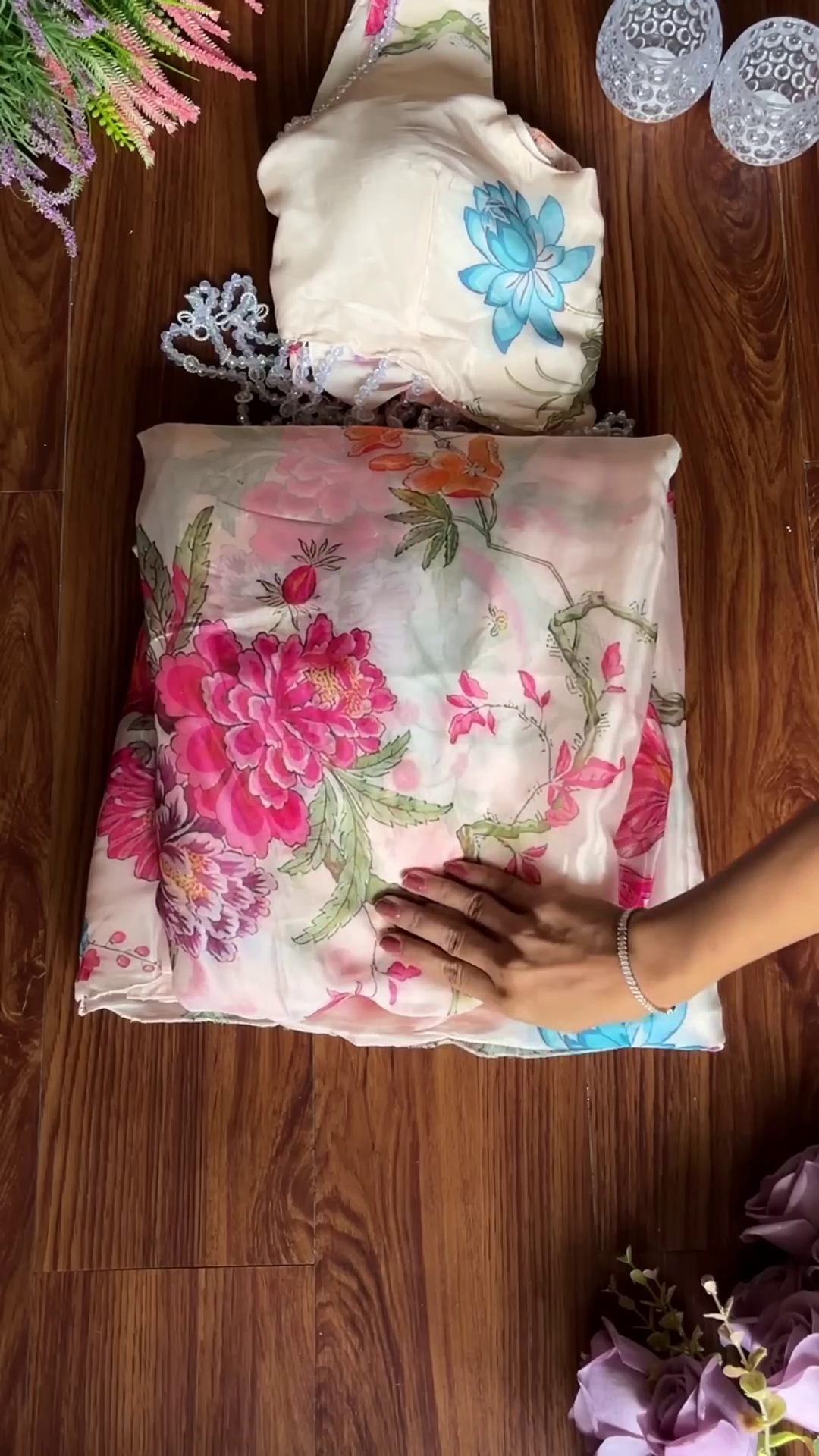 Blooming Cream Floral Print Designer Lehenga Choli Set with Pearl Accents