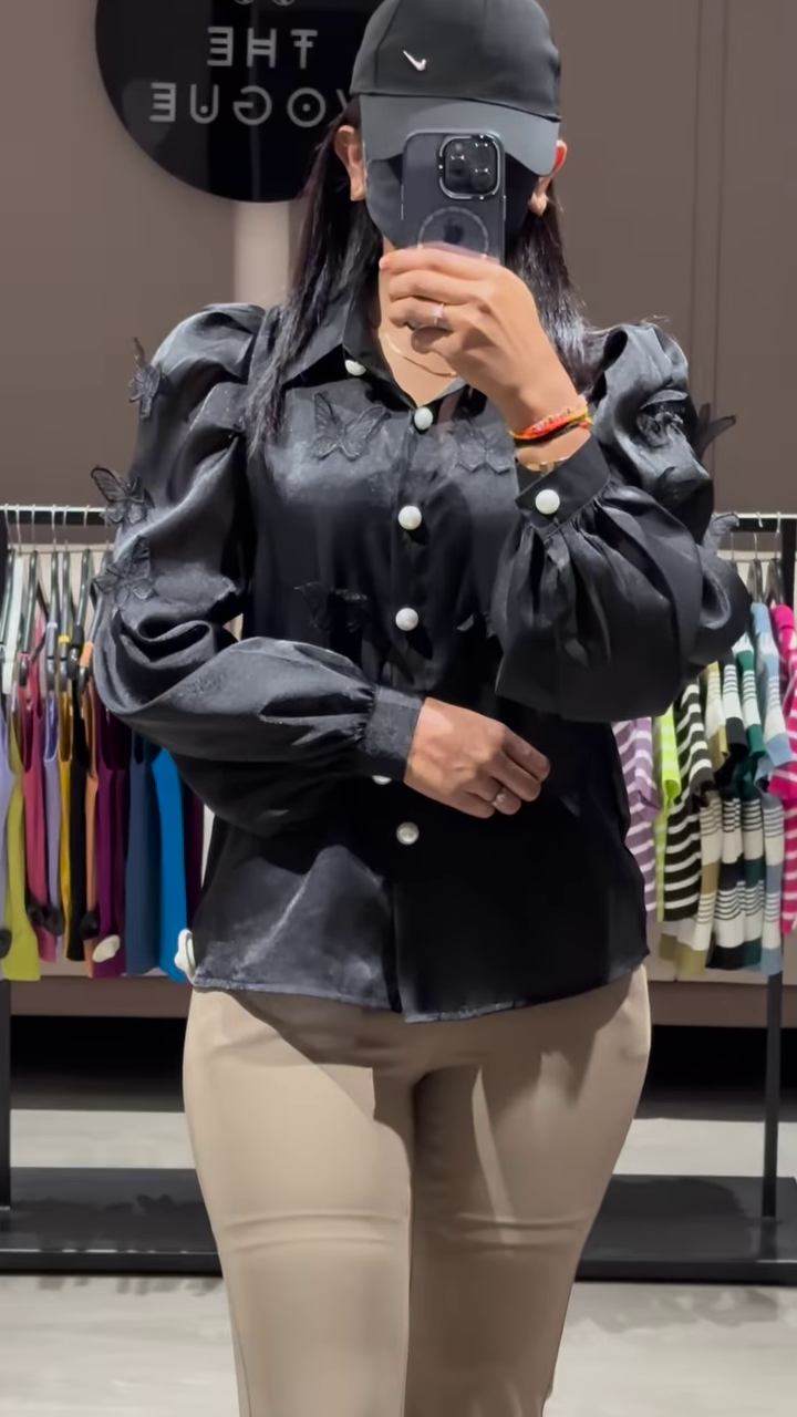The silhouette of the blouse is designed to be comfortable yet flattering. It likely has a relaxed fit that drapes beautifully, and the lightweight sheer fabric ensures breathability, making it suitable for the warmer weather often experienced in Ahmedabad. The length is versatile, making it easy to tuck into skirts or trousers for a more formal look, or wear it untucked with jeans or casual pants for a chic and effortless style.