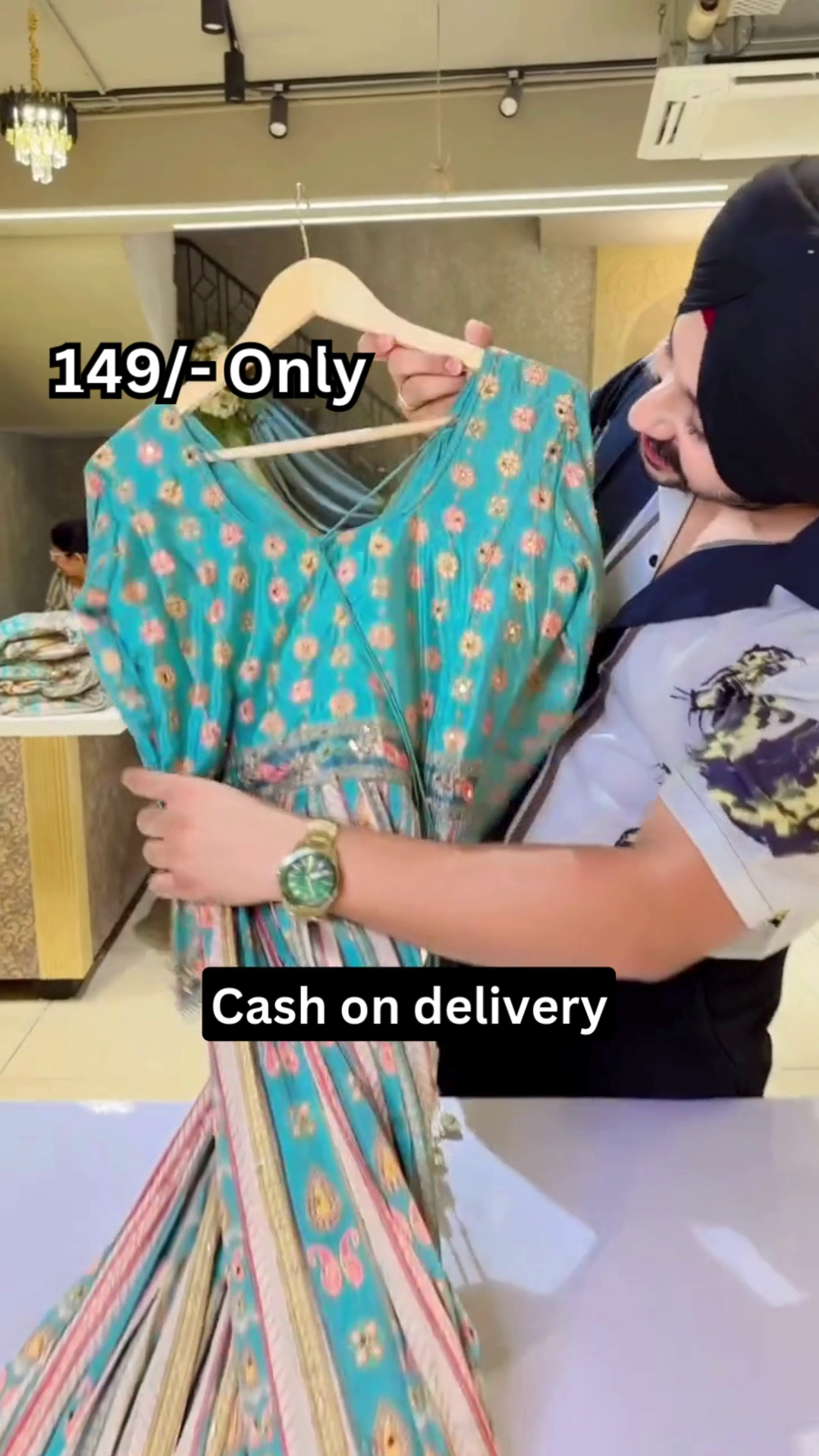 This dress is ideal for festivals, family gatherings, ethnic day celebrations, or boutique promotions. Its vibrant color and mixed-pattern design make it suitable for women who enjoy expressive fashion with cultural roots. The embellishments and stripes offer a unique blend of tradition and trend.