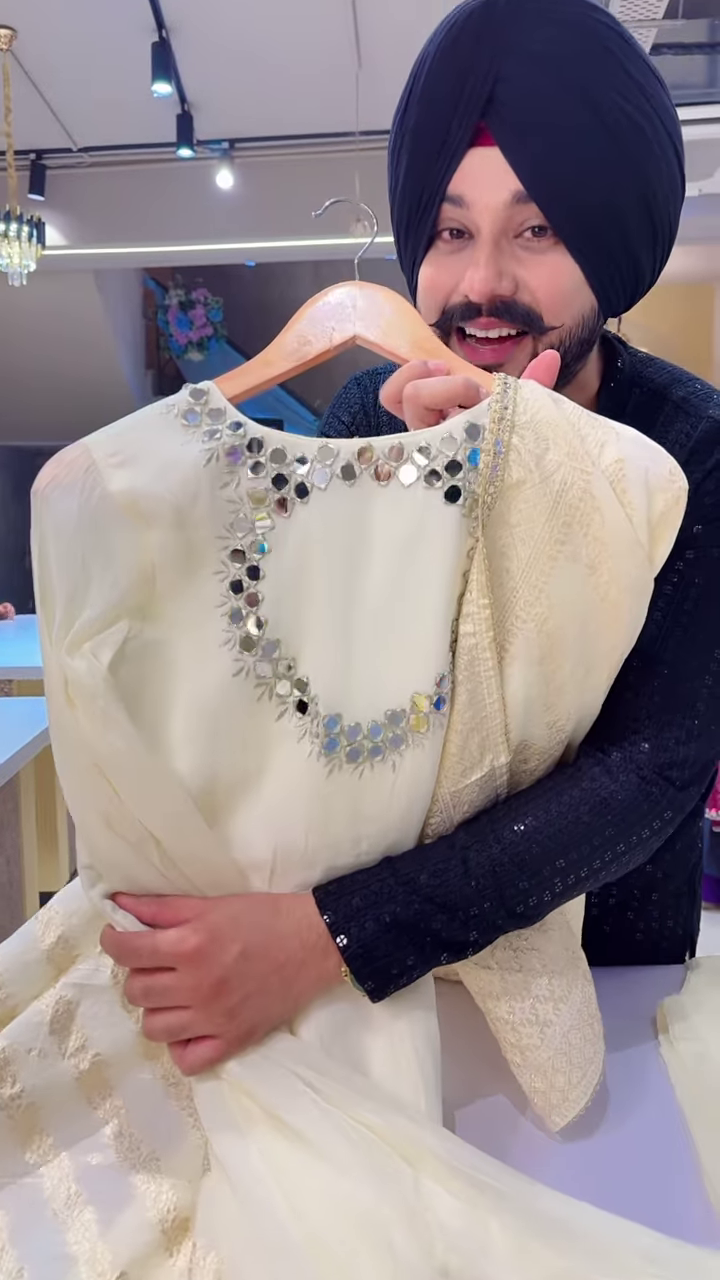 🌟 Design Highlights: Mirror Work & Gold Embroidery